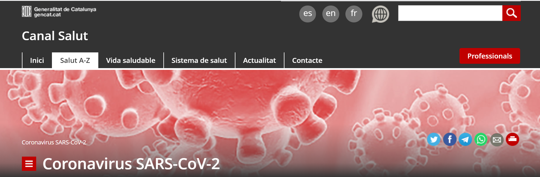 Podeu veure tota la informació del Coronavirus SARS-CoV-2 al Canal Salut de la Generalitat de Catalunya
